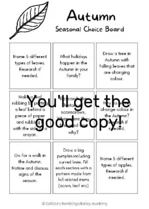 You can use this Autumn choice board however you want in your homeschool or anywhere else.