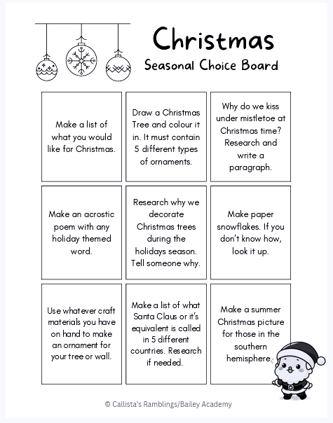 You can use this Christmas choice board however you want in your homeschool or anywhere else.
